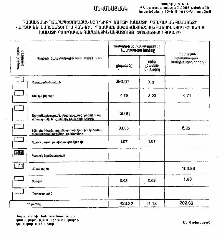 4. Ընդունել ի գիտություն Հայաստանի Հանրապետության Սյունիքի մարզի Խալաջի գյուղական համայնքի հողային ֆոնդի առկայության և բաշխման մասին հաշվետվությունը` 2005 թվականի հունվարի 1-ի դրությամբ` համաձայն NN 8 և 9 հավելվածների: