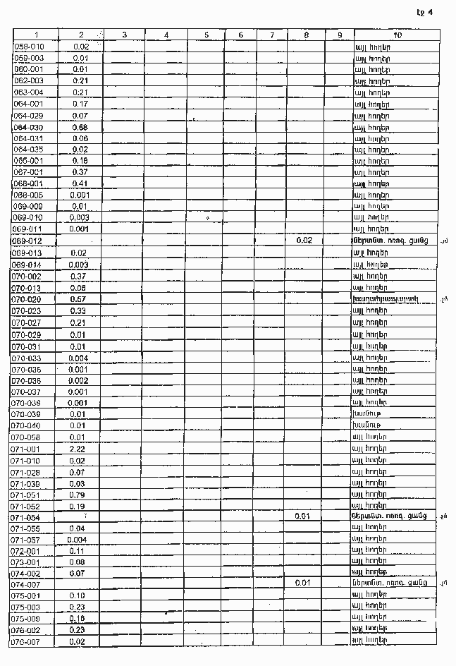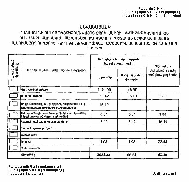 4. Ընդունել ի գիտություն Հայաստանի Հանրապետության Վայոց ձորի մարզի Զառիթափի գյուղական համայնքի հողային ֆոնդի առկայության և բաշխման մասին հաշվետվությունը` 2005 թվականի հունվարի 1-ի դրությամբ` համաձայն NN 8 և 9 հավելվածների:
