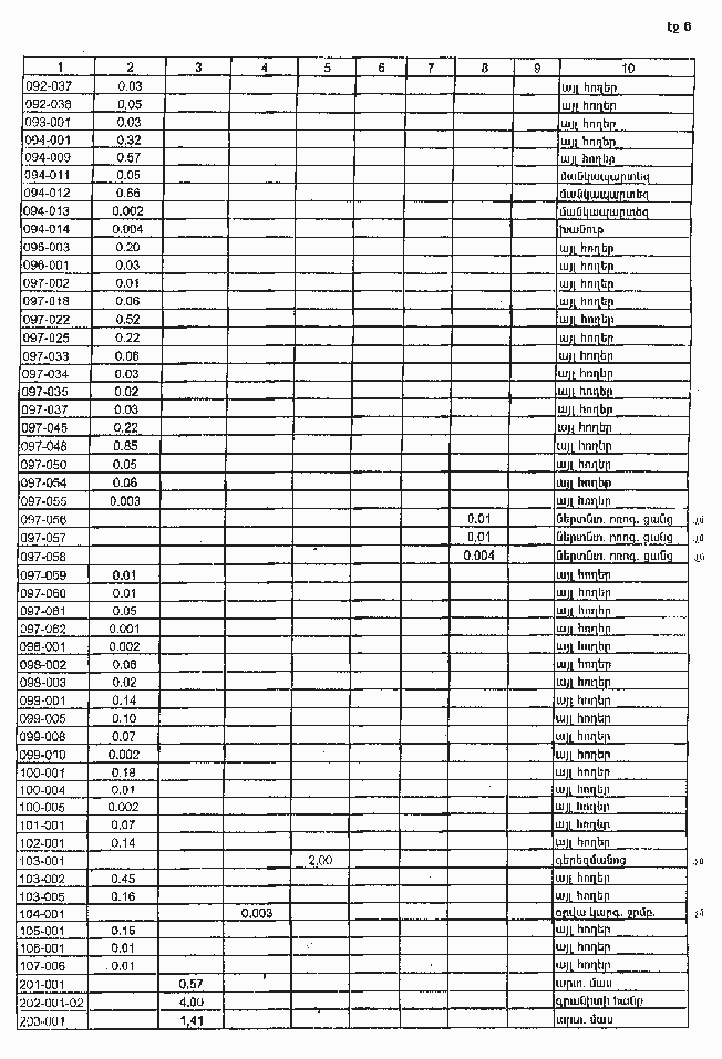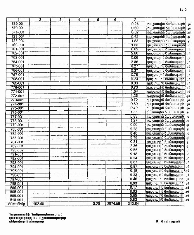 6. Թույլատրել Հայաստանի Հանրապետության կառավարությանն առընթեր անշարժ գույքի կադաստրի պետական կոմիտեի նախագահին Հայաստանի Հանրապետության պետական գեոդեզիական ցանցի հավասարակշռման արդյունքների հիման վրա Հայաստանի Հանրապետության վարչատարածքային միավորների սահմանանիշերի կոորդինատների ժողովածուի հրատարակումից հետո հողային ֆոնդի ընթացիկ հաշվառման ժամանակ Հայաստանի Հանրապետության Վայոց ձորի մարզի Զառիթափի գյուղական համայնքի հողային հաշվեկշռում սահմանված կարգով կատարել համապատասխան փոփոխություններ:
