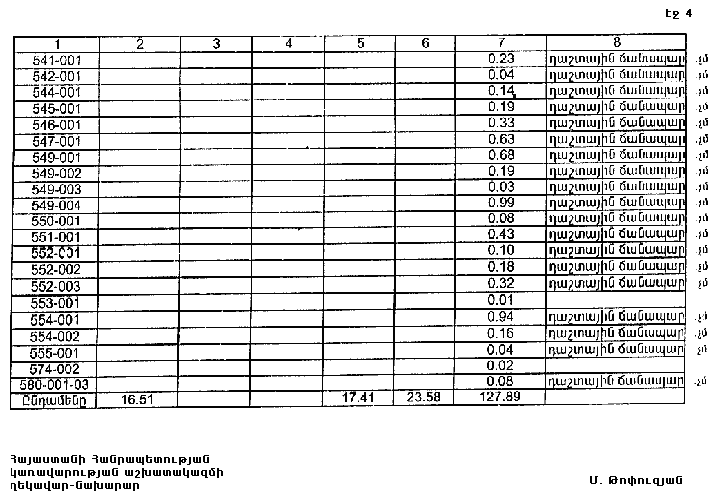 4. Ընդունել ի գիտություն Հայաստանի Հանրապետության Տավուշի մարզի Դիտավանի գյուղական համայնքի հողային ֆոնդի առկայության և բաշխման մասին հաշվետվությունը` 2005 թվականի հունվարի 1-ի դրությամբ` համաձայն NN 8 և 9 հավելվածների: