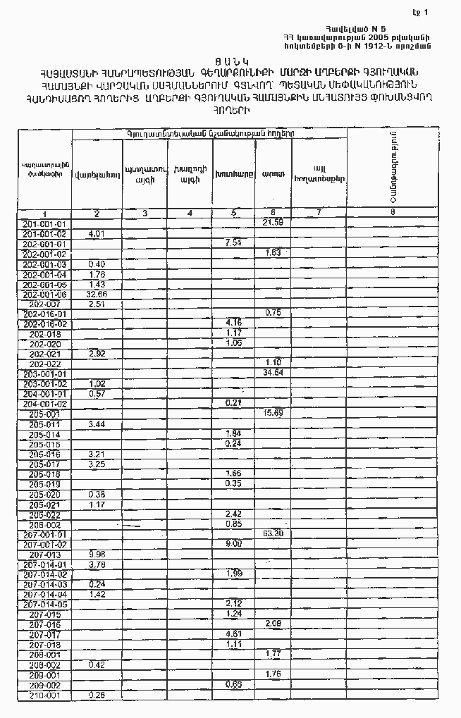 6 հոկտեմբերի 2005 թվականի N 1912-Ն