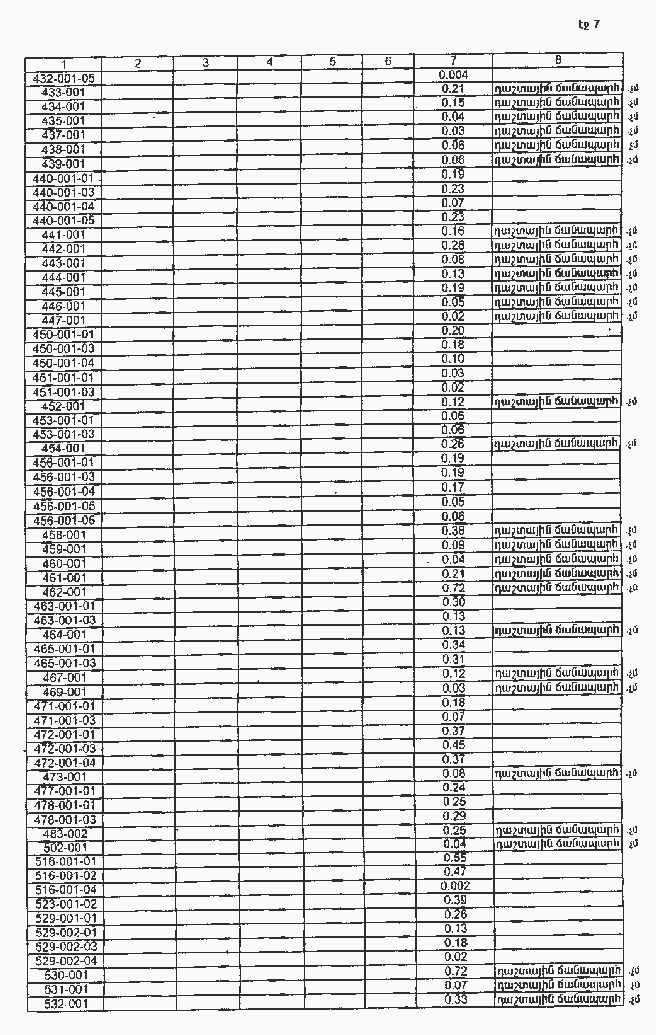 7. Հայաստանի Հանրապետության Գեղարքունիքի մարզպետին` Հայաստանի Հանրապետության կառավարության 2000 թվականի հոկտեմբերի 23-ի N 656 որոշմամբ սահմանված կարգով` սկզբնական հաշվառման տվյալների հիման վրա ապահովել մարզի տարածքում ընթացիկ հաշվառման աշխատանքների իրականացումը: