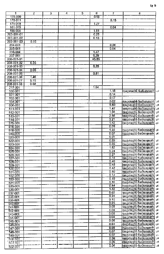 4. Ընդունել ի գիտություն Հայաստանի Հանրապետության Լոռու մարզի Շիրակամուտի գյուղական համայնքի հողային ֆոնդի առկայության և բաշխման մասին հաշվետվությունը՝ 2005 թվականի հունվարի 1-ի դրությամբ՝ համաձայն NN 8 և 9 հավելվածների: