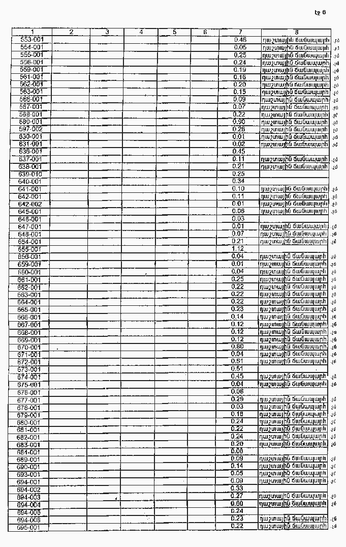 6. Թույլատրել Հայաստանի Հանրապետության կառավարությանն առընթեր անշարժ գույքի կադաստրի պետական կոմիտեի նախագահին Հայաստանի Հանրապետության պետական գեոդեզիական ցանցի հավասարակշռման արդյունքների հիման վրա Հայաստանի Հանրապետության վարչատարածքային միավորների սահմանանիշերի կոորդինատների ժողովածուի հրատարակումից հետո հողային ֆոնդի ընթացիկ հաշվառման ժամանակ Հայաստանի Հանրապետության Լոռու մարզի Շիրակամուտի գյուղական համայնքի հողային հաշվեկշռում սահմանված կարգով կատարել համապատասխան փոփոխություններ: