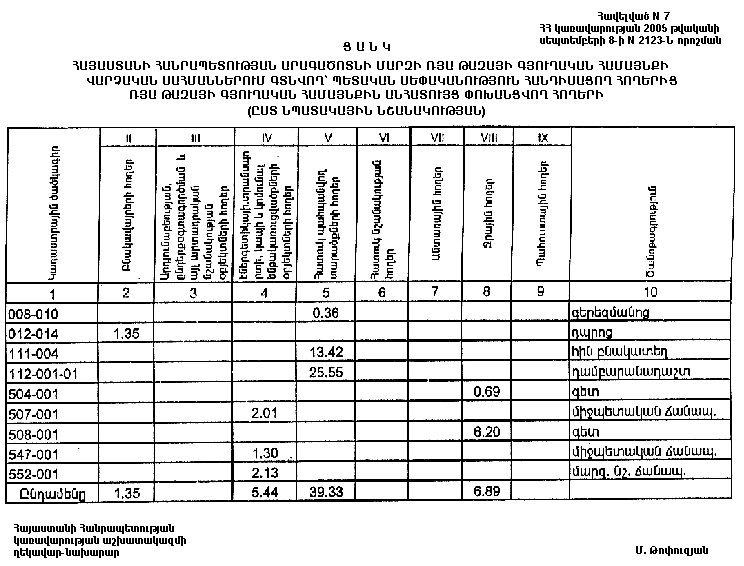 ՀԱՅԱՍՏԱՆԻ ՀԱՆՐԱՊԵՏՈՒԹՅԱՆ ԱՐԱԳԱԾՈՏՆԻ ՄԱՐԶԻ ՌՅԱ ԹԱԶԱՅԻ ԳՅՈՒՂԱԿԱՆ ՀԱՄԱՅՆՔԻ ՎԱՐՉԱԿԱՆ ՍԱՀՄԱՆՆԵՐՈՒՄ ԳՏՆՎՈՂ` ՊԵՏԱԿԱՆ ՍԵՓԱԿԱՆՈՒԹՅՈՒՆ ՀԱՆԴԻՍԱՑՈՂ ՀՈՂԵՐԻ