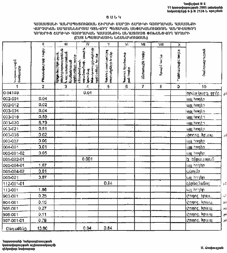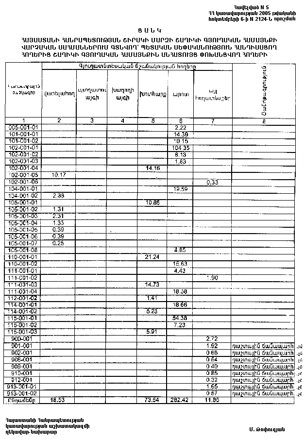 6 հոկտեմբերի 2005 թվականի N 2124-Ն