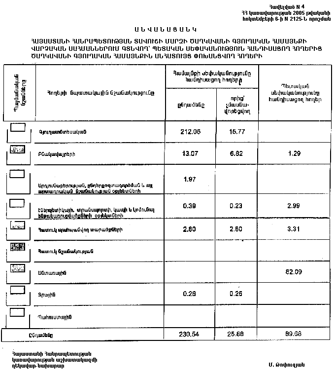 4. Ընդունել ի գիտություն Հայաստանի Հանրապետության Տավուշի մարզի Ծաղկավանի գյուղական համայնքի հողային ֆոնդի առկայության և բաշխման մասին հաշվետվությունը` 2005 թվականի հունվարի 1-ի դրությամբ` համաձայն N 8 հավելվածի: