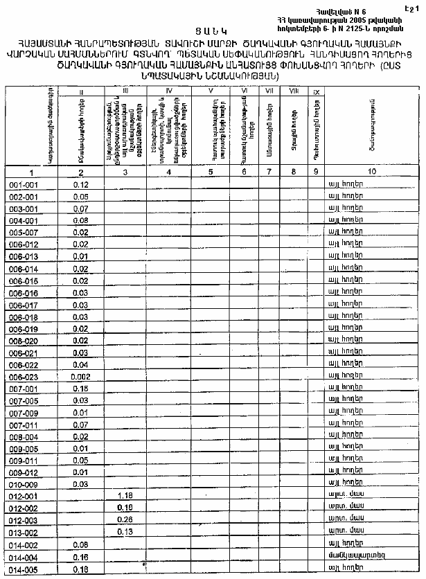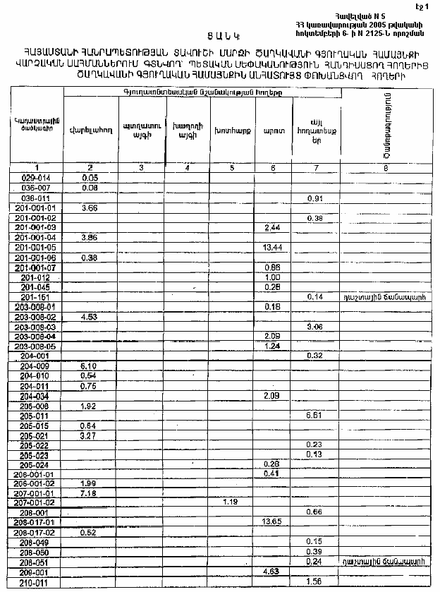 6 հոկտեմբերի 2005 թվականի N 2125-Ն
