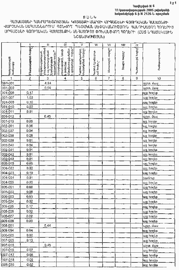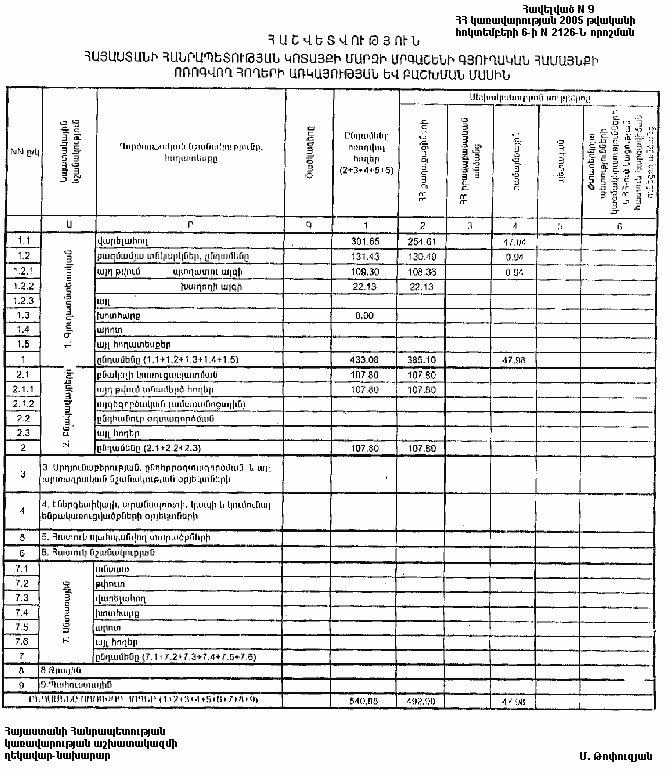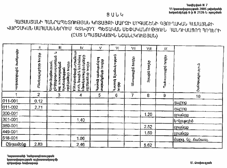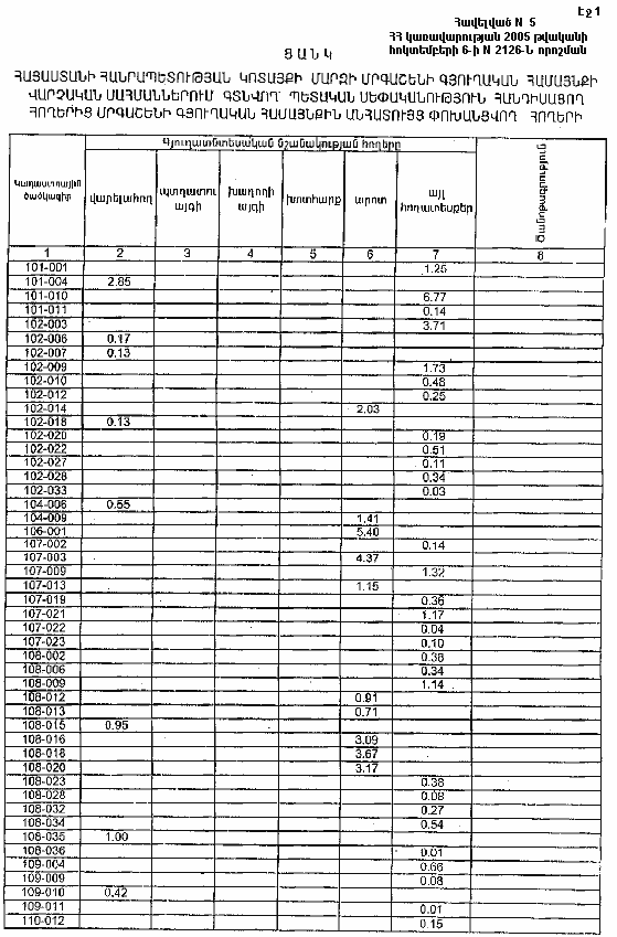 6 հոկտեմբերի 2005 թվականի N 2126-Ն