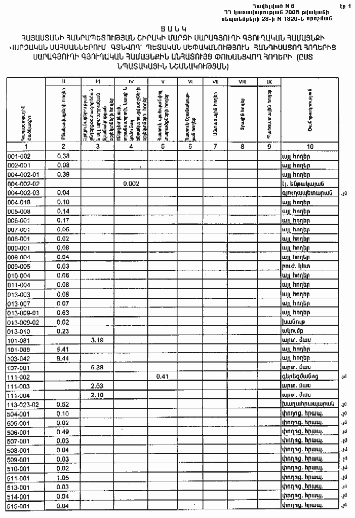ՀԱՅԱՍՏԱՆԻ ՀԱՆՐԱՊԵՏՈՒԹՅԱՆ ՇԻՐԱԿԻ ՄԱՐԶԻ ՍԱՐԱԳՅՈՒՂԻ ԳՅՈՒՂԱԿԱՆ ՀԱՄԱՅՆՔԻ ՎԱՐՉԱԿԱՆ ՍԱՀՄԱՆՆԵՐՈՒՄ ԳՏՆՎՈՂ` ՊԵՏԱԿԱՆ ՍԵՓԱԿԱՆՈՒԹՅՈՒՆ ՀԱՆԴԻՍԱՑՈՂ ՀՈՂԵՐԻՑ ՍԱՐԱԳՅՈՒՂԻ ԳՅՈՒՂԱԿԱՆ ՀԱՄԱՅՆՔԻՆ ԱՆՀԱՏՈՒՅՑ ՓՈԽԱՆՑՎՈՂ ՀՈՂԵՐԻ