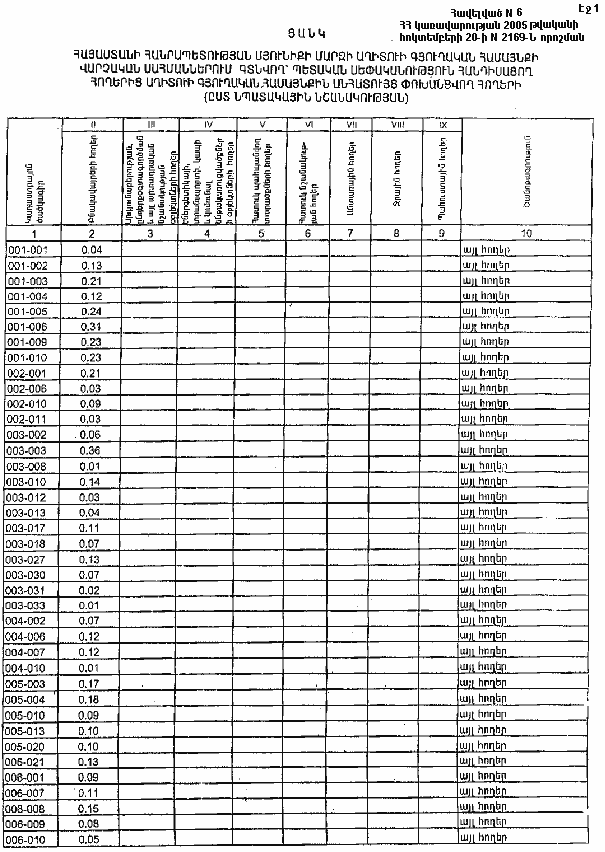 20 հոկտեմբերի 2005 թվականի N 2169-Ն