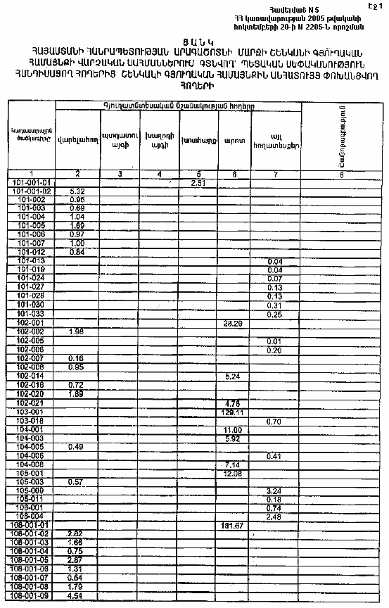 20 հոկտեմբերի 2005 թվականի N 2205-Ն
