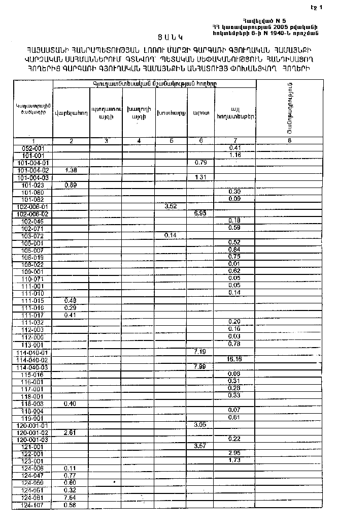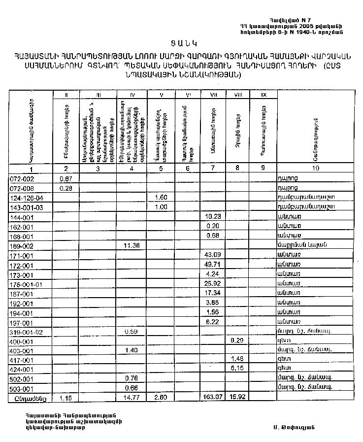7. Հայաստանի Հանրապետության Լոռու մարզպետին` Հայաստանի Հանրապետության կառավարության 2000 թվականի հոկտեմբերի 23-ի N 656 որոշմամբ սահմանված կարգով` սկզբնական հաշվառման տվյալների հիման վրա ապահովել մարզի տարածքում ընթացիկ հաշվառման աշխատանքների իրականացումը: