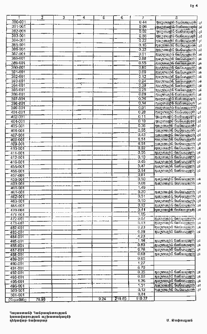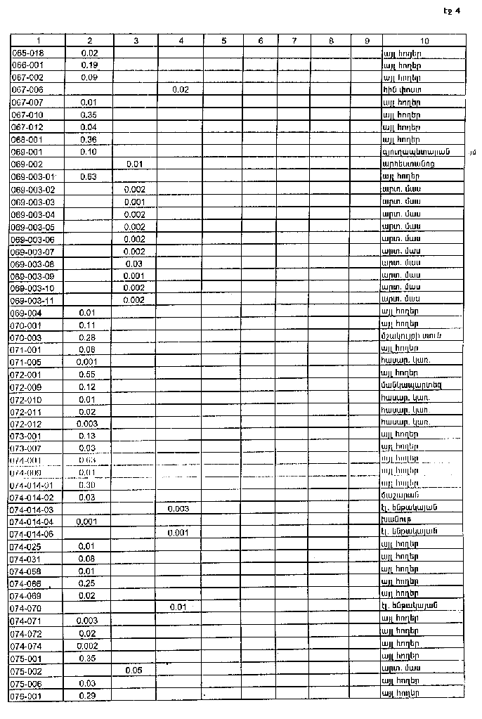 4. Ընդունել ի գիտություն Հայաստանի Հանրապետության Լոռու մարզի Գարգառի գյուղական համայնքի հողային ֆոնդի առկայության և բաշխման մասին հաշվետվությունը` 2005 թվականի հունվարի 1-ի դրությամբ` համաձայն NN 8 և 9 հավելվածների: