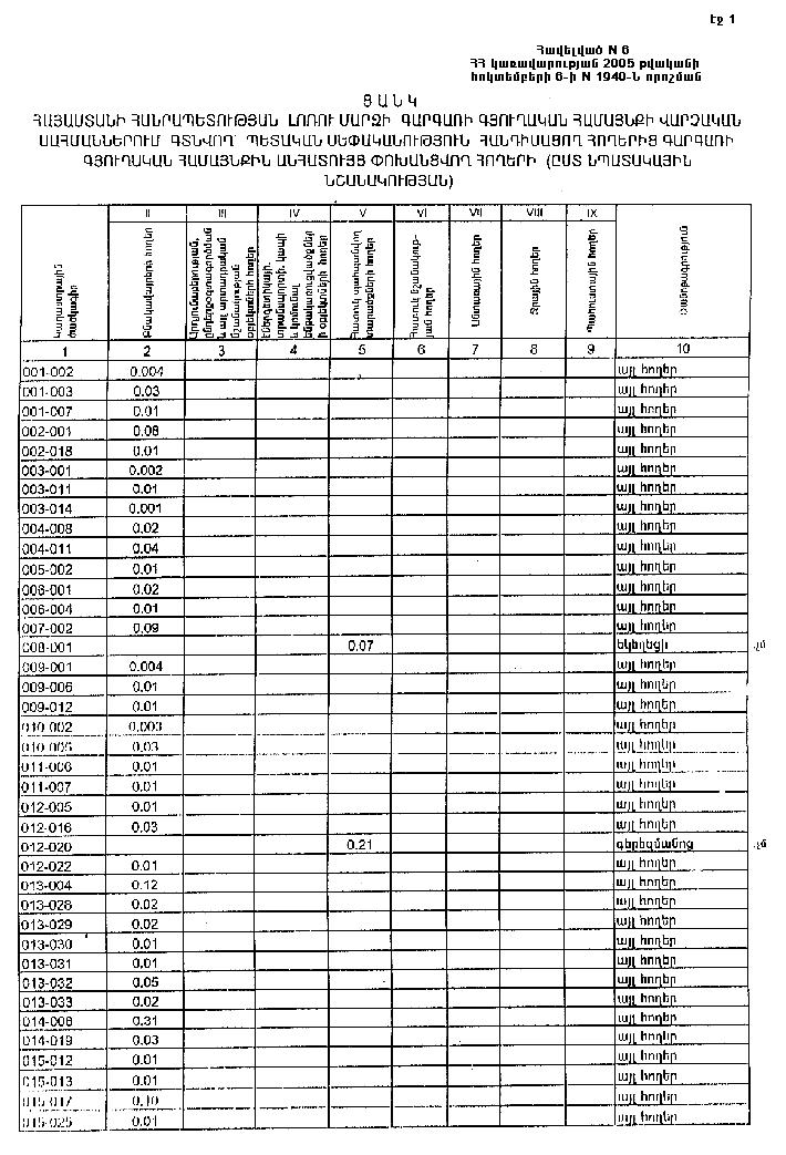 6 հոկտեմբերի 2005 թվականի N 1940-Ն