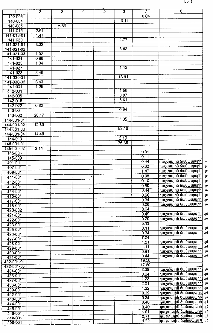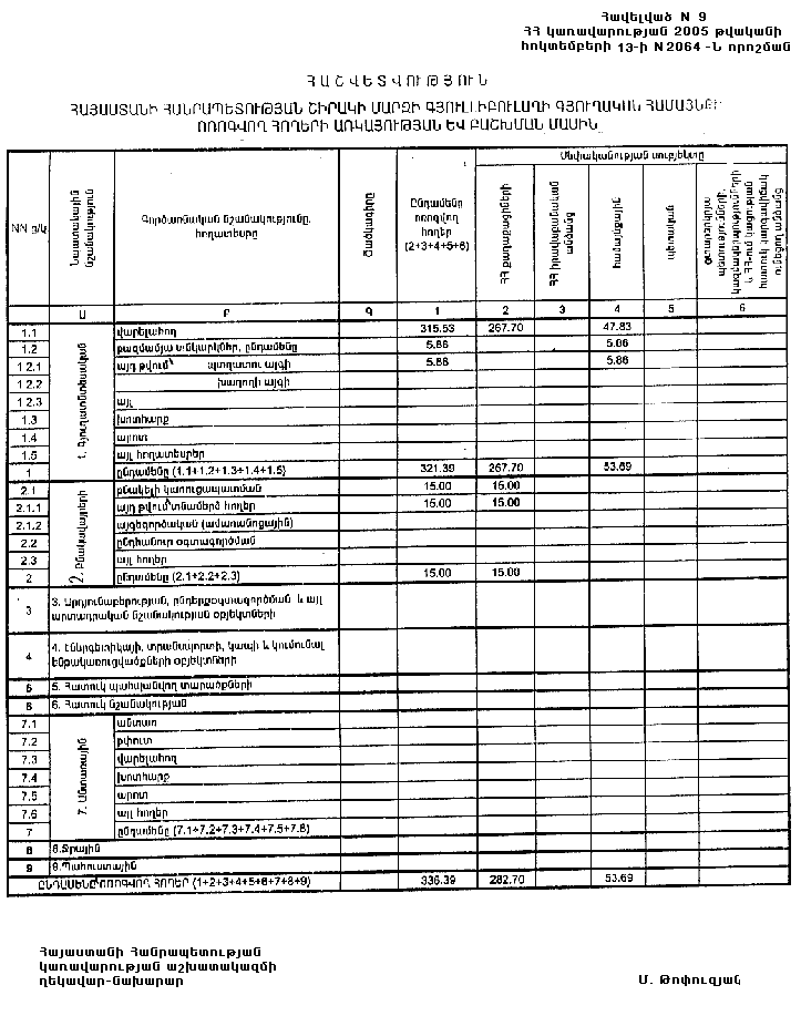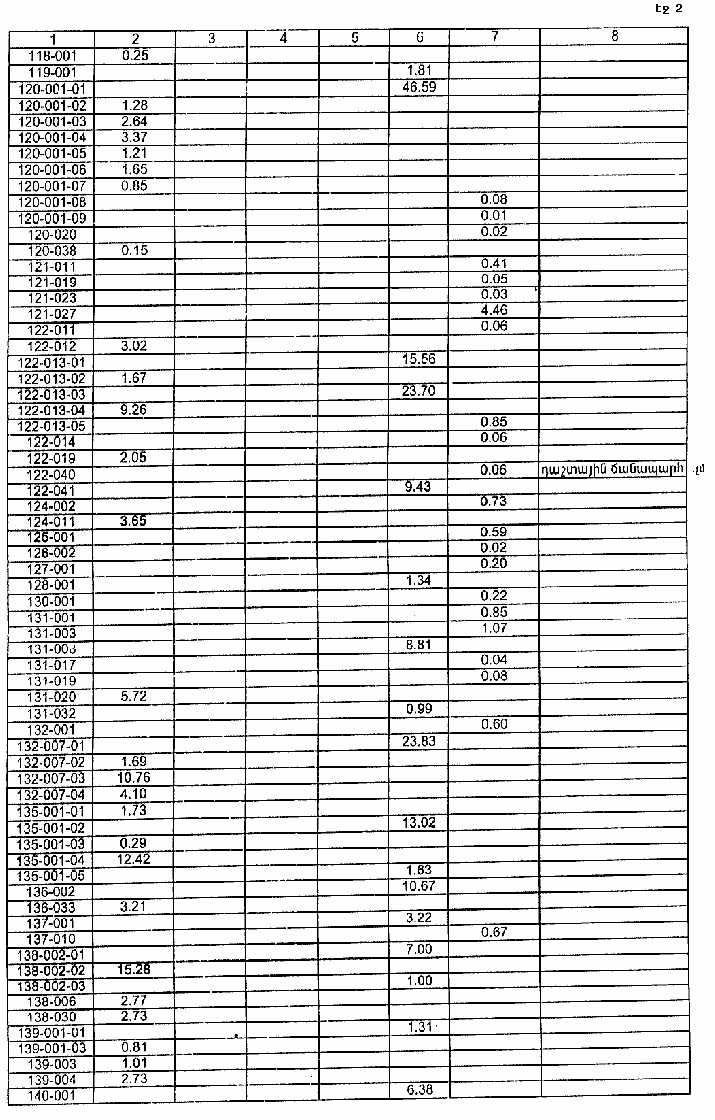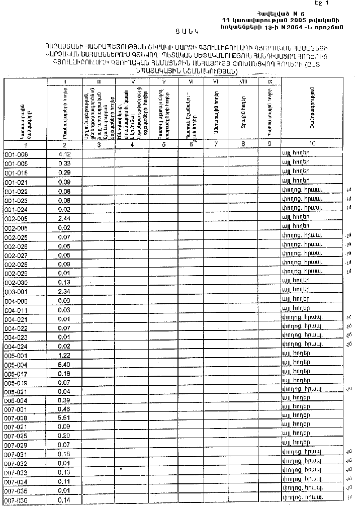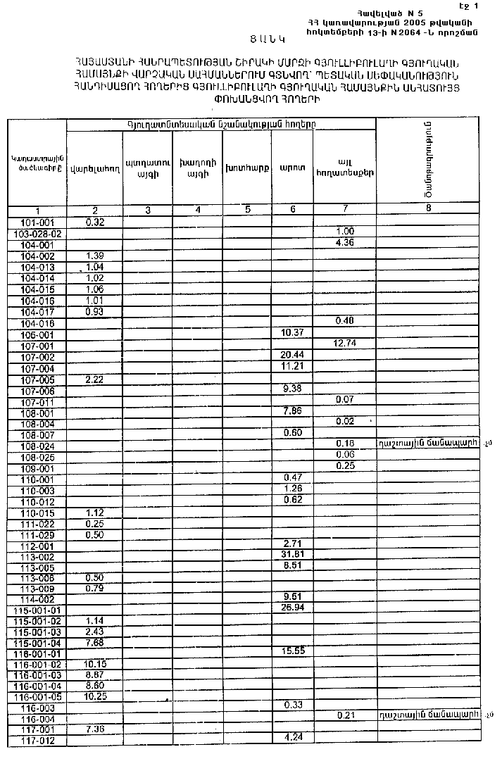 Հայաստանի Հանրապետության հողային օրենսգրքի 34-րդ ու 56-րդ, «Տեղական ինքնակառավարման մասին» Հայաստանի Հանրապետության օրենքի 6-րդ, 47-րդ ու 84-րդ և «Հայաստանի Հանրապետության վարչատարածքային բաժանման մասին» Հայաստանի Հանրապետության օրենքի 6-րդ հոդվածների պահանջներին համապատասխան` Հայաստանի Հանրապետության կառավարությունը որոշում է. 1. Հաստատել Հայաստանի Հանրապետության Շիրակի մարզի Գյուլլիբուլաղի գյուղական համայնքի վարչական սահմանների նկարագիրը` համաձայն NN 1 և 2 հավելվածների: 2. Հայաստանի Հանրապետության Շիրակի մարզի Գյուլլիբուլաղի գյուղական համայնքի վարչական սահմաններում գտնվող՝ պետական սեփականություն հանդիսացող 1240.97 հեկտար հողամասերից 1069.68 հեկտարը, որից՝ գյուղատնտեսական նշանակության` 950.67 հեկտար, բնակավայրերի հողերի՝ 69.83 հեկտար, արդյունաբերության, ընդերքօգտագործման և այլ արտադրական նշանակության օբյեկտների՝ 39.26 հեկտար, էներգետիկայի, տրանսպորտի, կապի և կոմունալ ենթակառուցվածքների օբյեկտների՝ 0.22 հեկտար, հատուկ պահպանվող տարածքների՝ 2.76 հեկտար, ջրային հողերի` 6.94 հեկտար, անհատույց սեփականության իրավունքով փոխանցել Գյուլլիբուլաղի գյուղական համայնքին՝ համաձայն NN 3, 4, 5 և 6 հավելվածների: 3. Սահմանել, որ Հայաստանի Հանրապետության հողային օրենսգրքի 60-րդ հոդվածի պահանջներին համապատասխան` ա) Հայաստանի Հանրապետության Շիրակի մարզի Գյուլլիբուլաղի գյուղական համայնքին անհատույց սեփականության իրավունքով փոխանցվող 1069.68 հեկտար հողերից 87.57 հեկտարը մասնավորեցման ենթակա չէ. բ) Հայաստանի Հանրապետության Շիրակի մարզի Գյուլլիբուլաղի գյուղական համայնքի վարչական սահմաններում գտնվող հողերից 171.29 հեկտարը համարվում է պետական սեփականություն՝ համաձայն N 7 հավելվածի: 4. Ընդունել ի գիտություն Հայաստանի Հանրապետության Շիրակի մարզի Գյուլլիբուլաղի գյուղական համայնքի հողային ֆոնդի առկայության և բաշխման մասին հաշվետվությունը` 2005 թվականի հունվարի 1-ի դրությամբ` համաձայն NN 8 և 9 հավելվածների: 5. Հայաստանի Հանրապետության կառավարությանն առընթեր անշարժ գույքի կադաստրի պետական կոմիտեի նախագահին` սահմանված կարգով ապահովել սկզբնական հաշվառման նյութերի տրամադրումը Հայաստանի Հանրապետության Շիրակի մարզի Գյուլլիբուլաղի գյուղական համայնքի ղեկավարին` հողերի ընթացիկ հաշվառումն անցկացնելու և համայնքի հողային հաշվեկշիռը կազմելու համար: 6. Թույլատրել Հայաստանի Հանրապետության կառավարությանն առընթեր անշարժ գույքի կադաստրի պետական կոմիտեի նախագահին Հայաստանի Հանրապետության պետական գեոդեզիական ցանցի հավասարակշռման արդյունքների հիման վրա Հայաստանի Հանրապետության վարչատարածքային միավորների սահմանանիշերի կոորդինատների ժողովածուի հրատարակումից հետո հողային ֆոնդի ընթացիկ հաշվառման ժամանակ Հայաստանի Հանրապետության Շիրակի մարզի Գյուլլիբուլաղի գյուղական համայնքի հողային հաշվեկշռում սահմանված կարգով կատարել համապատասխան փոփոխություններ: 7. Հայաստանի Հանրապետության Շիրակի մարզպետին` Հայաստանի Հանրապետության կառավարության 2000 թվականի հոկտեմբերի 23-ի N 656 որոշմամբ սահմանված կարգով` սկզբնական հաշվառման տվյալների հիման վրա ապահովել մարզի տարածքում ընթացիկ հաշվառման աշխատանքների իրականացումը: 8. Սույն որոշումն ուժի մեջ է մտնում պաշտոնական հրապարակմանը հաջորդող օրվանից։ |