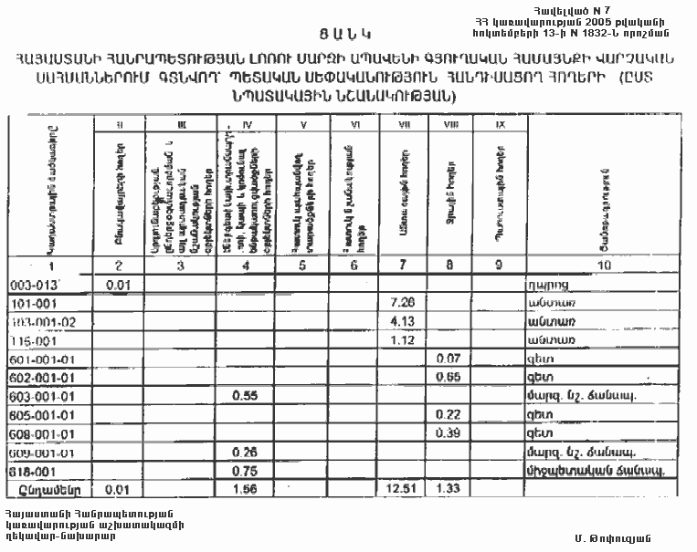 7. Հայաստանի Հանրապետության Լոռու մարզպետին` Հայաստանի Հանրապետության կառավարության 2000 թվականի հոկտեմբերի 23-ի N 656 որոշմամբ սահմանված կարգով` սկզբնական հաշվառման տվյալների հիման վրա ապահովել մարզի տարածքում ընթացիկ հաշվառման աշխատանքների իրականացումը:
