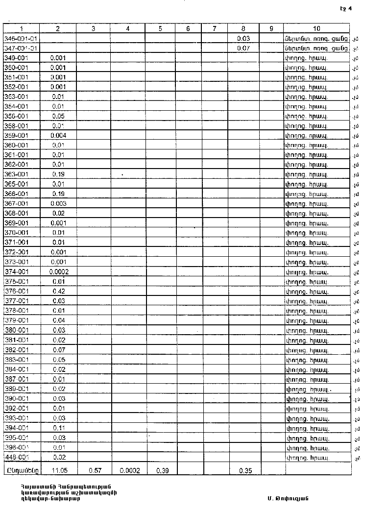 4. Ընդունել ի գիտություն Հայաստանի Հանրապետության Սյունիքի մարզի Աղվանիի գյուղական համայնքի հողային ֆոնդի առկայության և բաշխման մասին հաշվետվությունը` 2005 թվականի հունվարի 1-ի դրությամբ` համաձայն NN 8 և 9 հավելվածների: