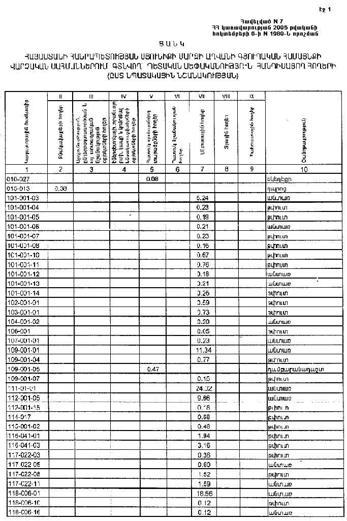 7. Հայաստանի Հանրապետության Սյունիքի մարզպետին` Հայաստանի Հանրապետության կառավարության 2000 թվականի հոկտեմբերի 23-ի N 656 որոշմամբ սահմանված կարգով` սկզբնական հաշվառման տվյալների հիման վրա ապահովել մարզի տարածքում ընթացիկ հաշվառման աշխատանքների իրականացումը: