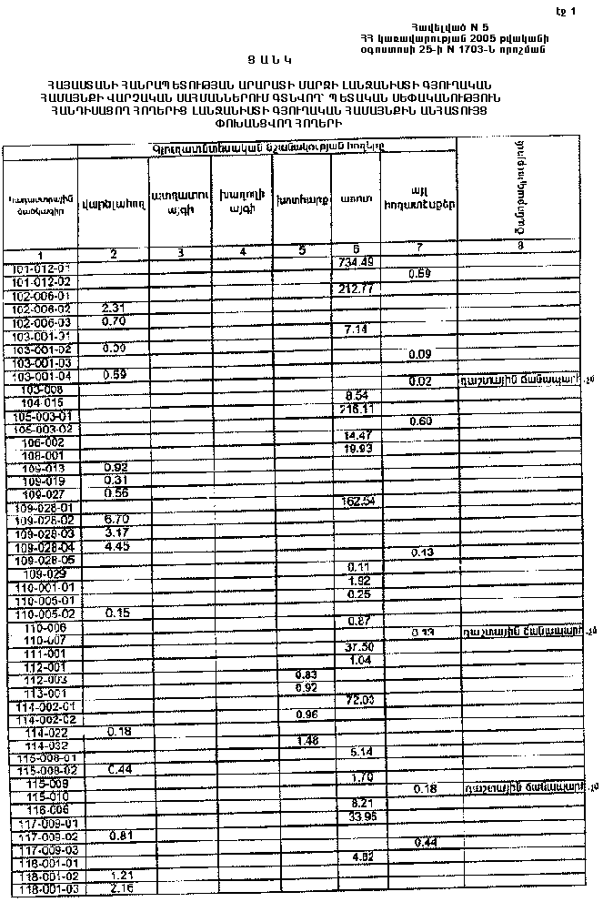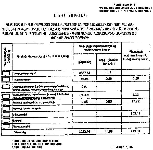 4. Ընդունել ի գիտություն Հայաստանի Հանրապետության Արարատի մարզի Լանջանիստի գյուղական համայնքի հողային ֆոնդի առկայության և բաշխման մասին հաշվետվությունը՝ 2005 թվականի հունվարի 1-ի դրությամբ՝ համաձայն NN 8 և 9 հավելվածների: