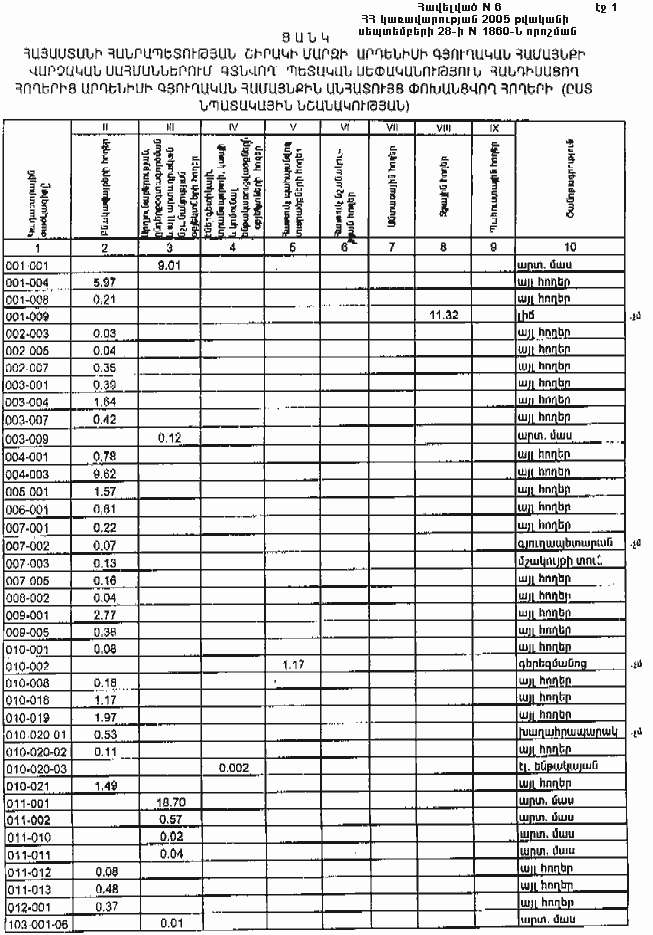 4. Ընդունել ի գիտություն Հայաստանի Հանրապետության Շիրակի մարզի Արդենիսի գյուղական համայնքի հողային ֆոնդի առկայության և բաշխման մասին հաշվետվությունը` 2005 թվականի հունվարի 1-ի դրությամբ` համաձայն N 8 հավելվածի: