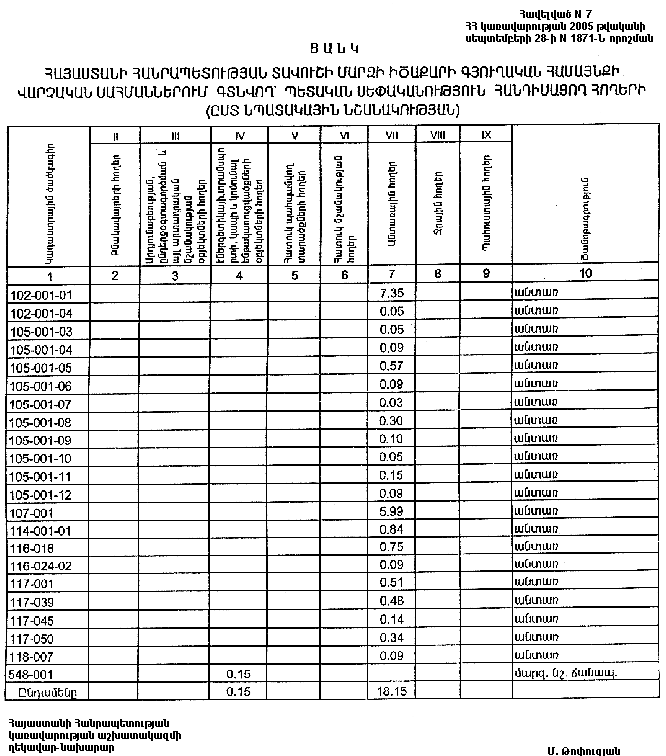 28 սեպտեմբերի 2005 թվականի N 1871-Ն