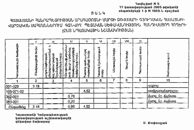 1 սեպտեմբերի 2005 թվականի N 1685-Ն