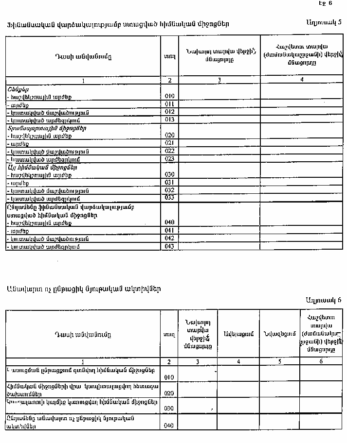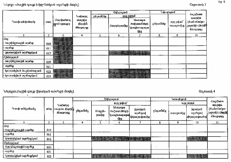 զ) ապահովագրական ընկերության ֆինանսական հաշվետվություններին կից ծանոթագրությունների N 5 ձևը` համաձայն N 6 հավելվածի.