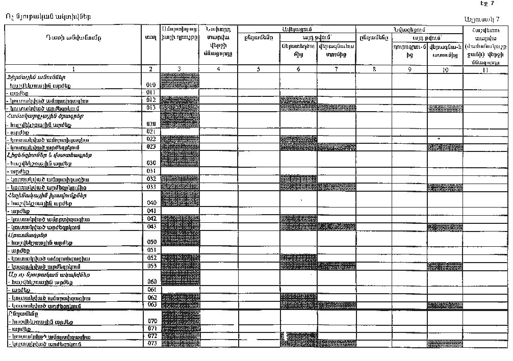 է) ապահովագրական ընկերությունների ֆինանսական հաշվետվությունների ձևերի լրացման մասին հրահանգը` համաձայն N 7 հավելվածի։