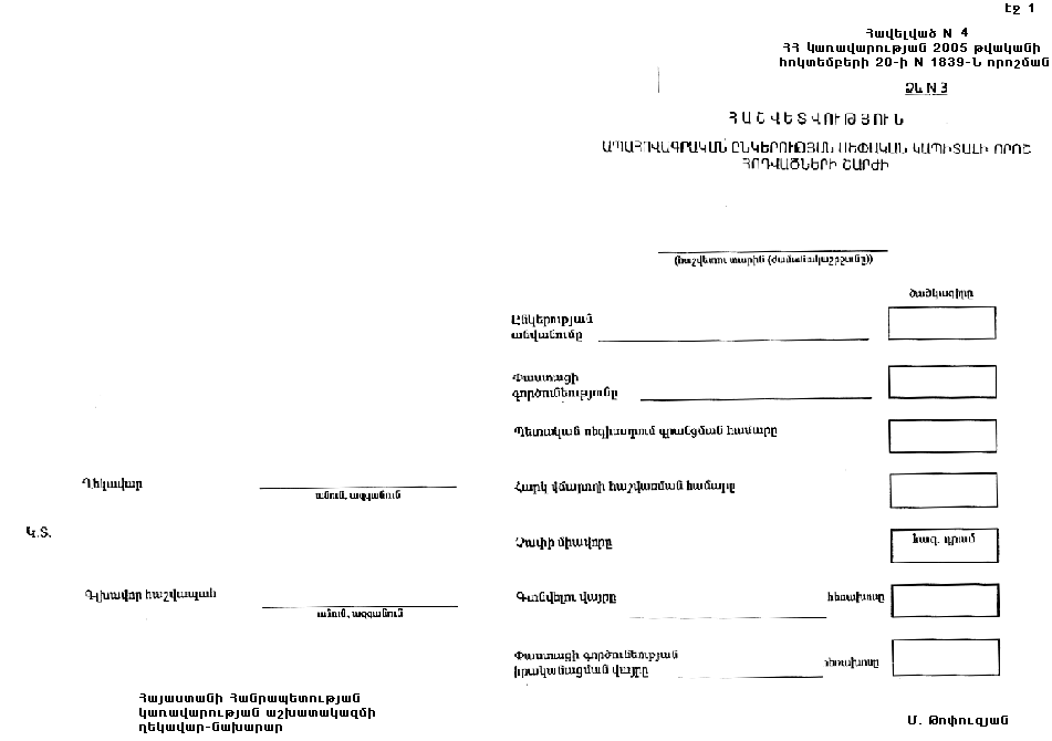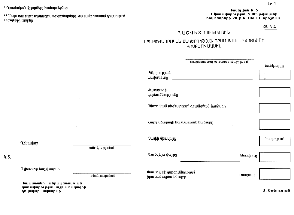 20 հոկտեմբերի 2005 թվականի N 1839-Ն