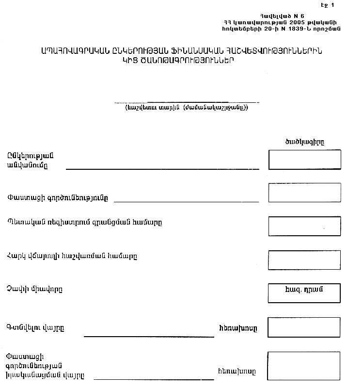 ԱՊԱՀՈՎԱԳՐԱԿԱՆ ԸՆԿԵՐՈՒԹՅԱՆ ՖԻՆԱՆՍԱԿԱՆ ՀԱՇՎԵՏՎՈՒԹՅՈՒՆՆԵՐԻՆ ԿԻՑ ԾԱՆՈԹԱԳՐՈՒԹՅՈՒՆՆԵՐ