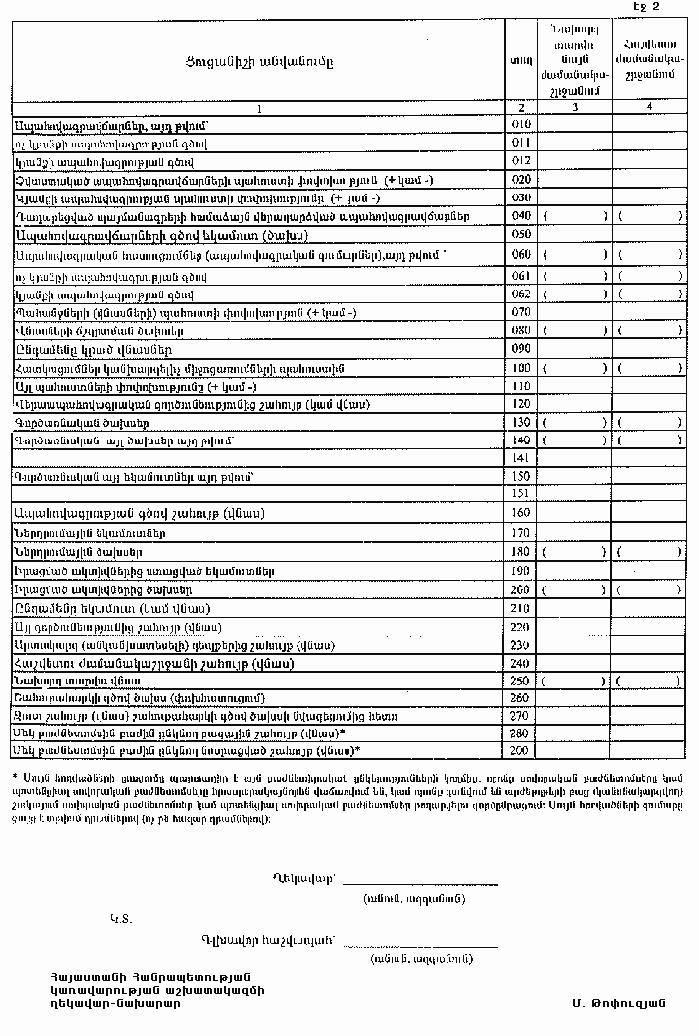 գ) ապահովագրական ընկերության ֆինանսական արդյունքների մասին հաշվետվության N 2 ձևը` համաձայն N 3 հավելվածի.