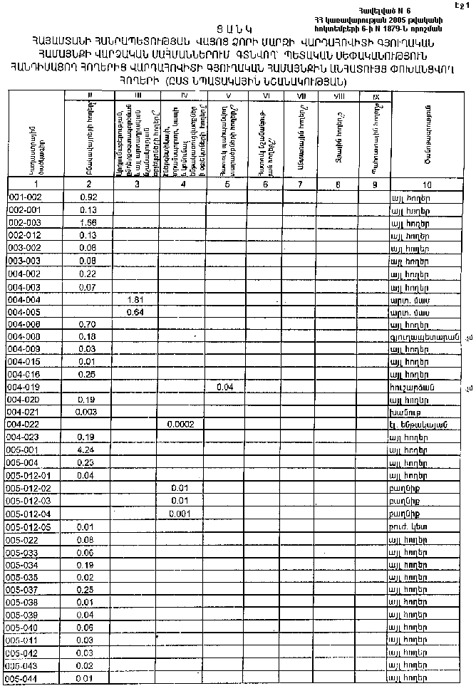 6. Թույլատրել Հայաստանի Հանրապետության կառավարությանն առընթեր անշարժ գույքի կադաստրի պետական կոմիտեի նախագահին Հայաստանի Հանրապետության պետական գեոդեզիական ցանցի հավասարակշռման արդյունքների հիման վրա Հայաստանի Հանրապետության վարչատարածքային միավորների սահմանանիշերի կոորդինատների ժողովածուի հրատարակումից հետո հողային ֆոնդի ընթացիկ հաշվառման ժամանակ Հայաստանի Հանրապետության Վայոց ձորի մարզի Վարդահովտի գյուղական համայնքի հողային հաշվեկշռում սահմանված կարգով կատարել համապատասխան փոփոխություններ: