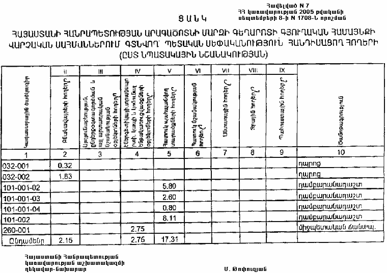 8 սեպտեմբերի 2005 թվականի N 1708-Ն