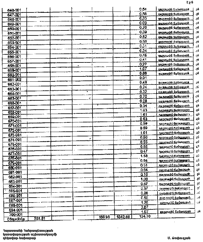 6. Հայաստանի Հանրապետության Լոռու մարզպետին՝ Հայաստանի Հանրապետության կառավարության 2000 թվականի հոկտեմբերի 23-ի N 656 որոշմամբ սահմանված կարգով՝ սկզբնական հաշվառման տվյալների հիման վրա ապահովել մարզի տարածքում ընթացիկ հաշվառման աշխատանքների իրականացումը: