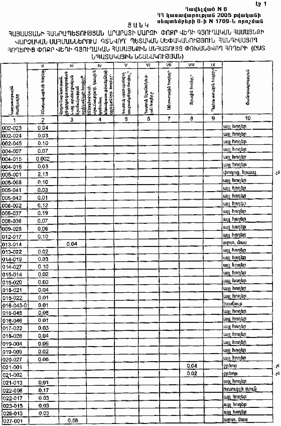 6. Թույլատրել Հայաստանի Հանրապետության կառավարությանն առընթեր անշարժ գույքի կադաստրի պետական կոմիտեի նախագահին Հայաստանի Հանրապետության պետական գեոդեզիական ցանցի հավասարակշռման արդյունքների հիման վրա Հայաստանի Հանրապետության վարչատարածքային միավորների սահմանանիշերի կոորդինատների ժողովածուի հրատարակումից հետո հողային ֆոնդի ընթացիկ հաշվառման ժամանակ Հայաստանի Հանրապետության Արարատի մարզի Փոքր Վեդու գյուղական համայնքի հողային հաշվեկշռում սահմանված կարգով կատարել համապատասխան փոփոխություններ: