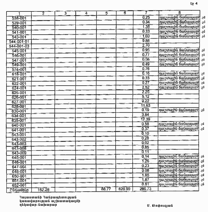 4. Ընդունել ի գիտություն Հայաստանի Հանրապետության Լոռու մարզի Ուռուտի գյուղական համայնքի հողային ֆոնդի առկայության և բաշխման մասին հաշվետվությունը` 2005 թվականի հունվարի 1-ի դրությամբ` համաձայն N 8 հավելվածի: