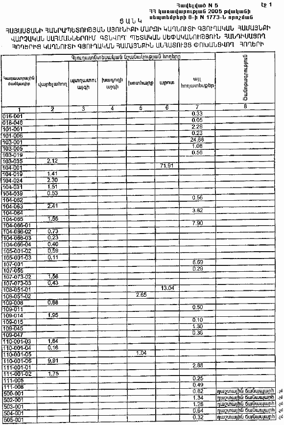 8 սեպտեմբերի 2005 թվականի N 1773-Ն