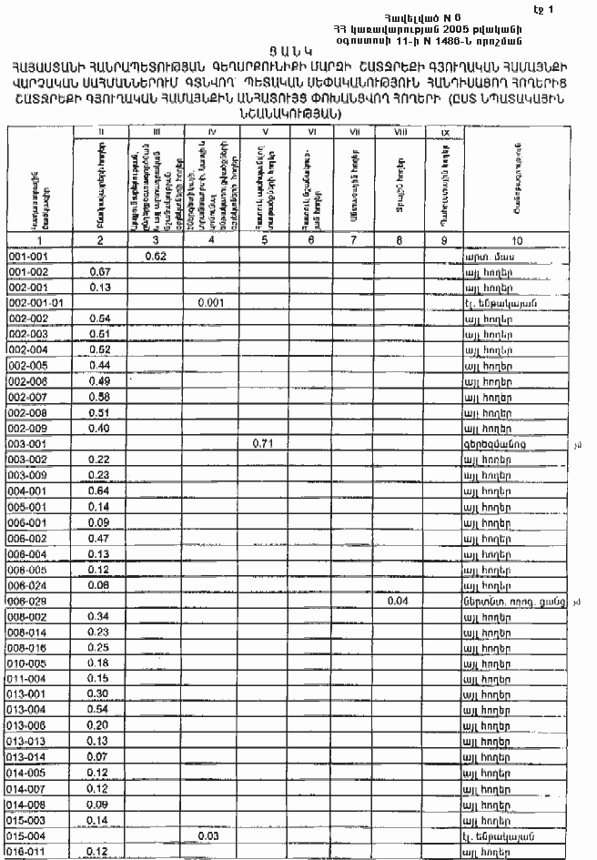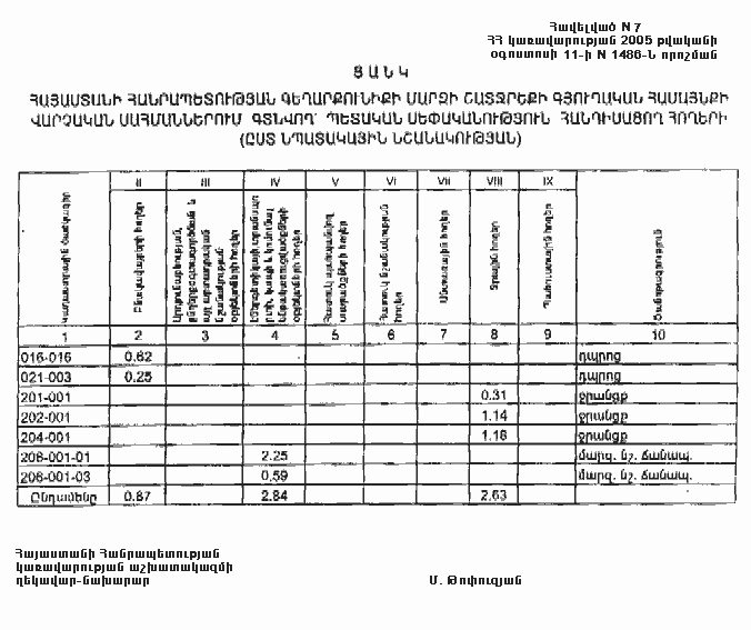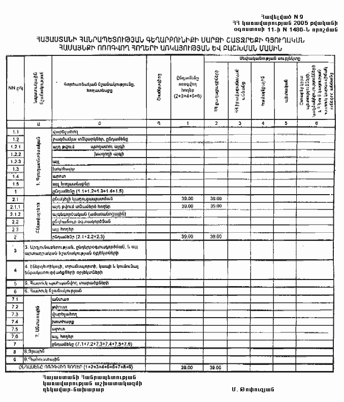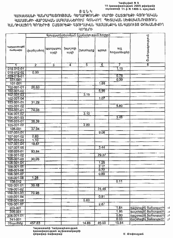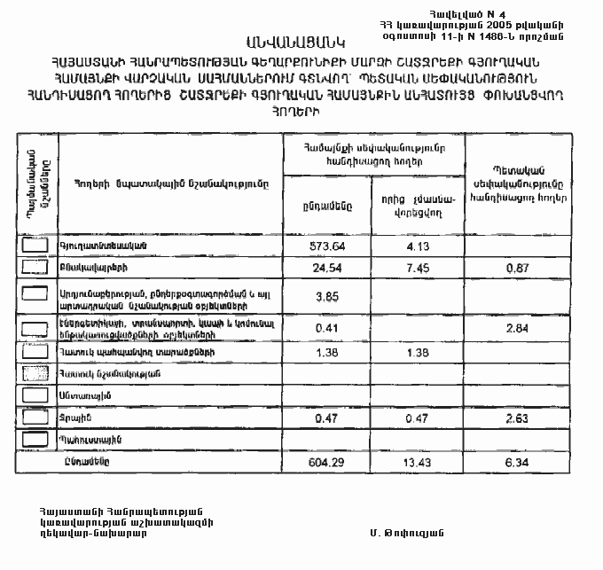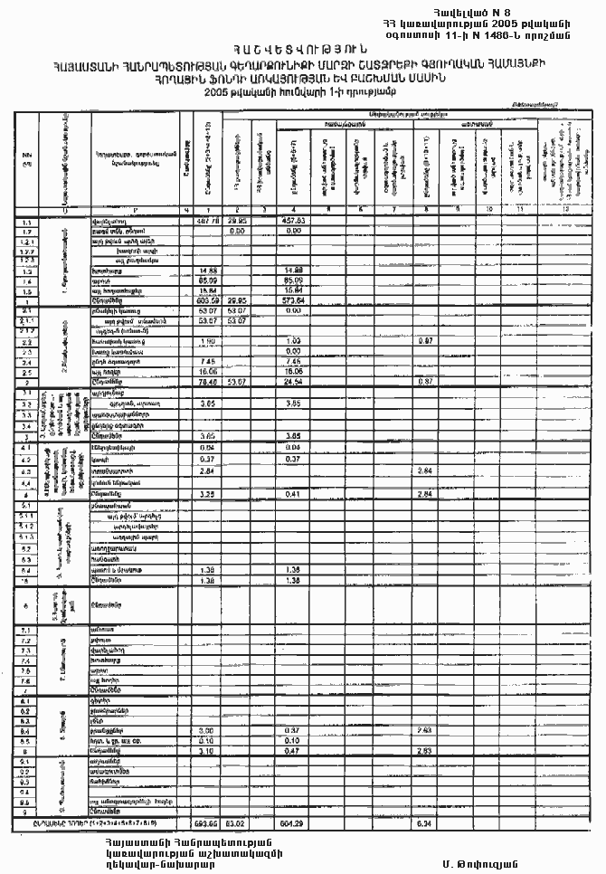 11 օգոստոսի 2005 թվականի N 1486-Ն