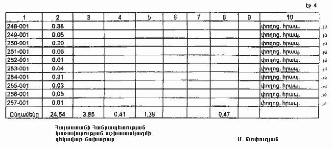 4. Ընդունել ի գիտություն Հայաստանի Հանրապետության Գեղարքունիքի մարզի Շատջրեքի գյուղական համայնքի հողային ֆոնդի առկայության և բաշխման մասին հաշվետվությունը՝ 2005 թվականի հունվարի 1-ի դրությամբ՝ համաձայն NN 8 և 9 հավելվածների:
