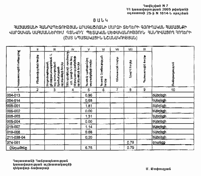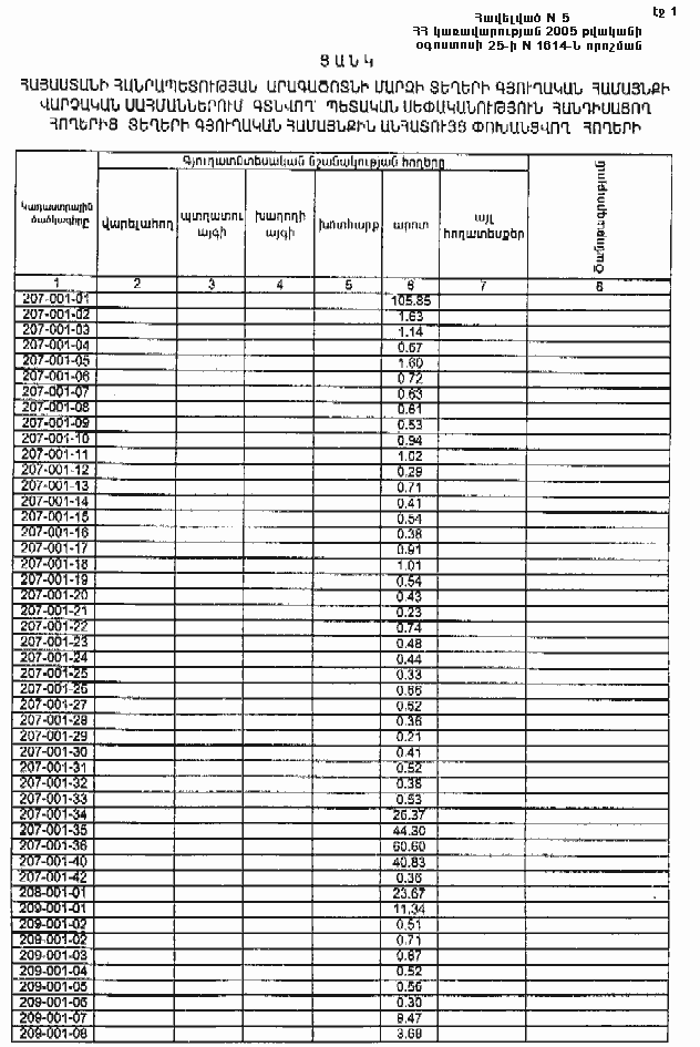 25 օգոստոսի 2005 թվականի N 1614-Ն