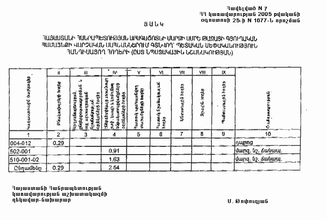 25 օգոստոսի 2005 թվականի N 1677-Ն