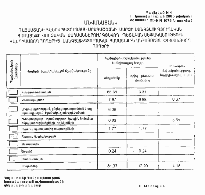 4. Ընդունել ի գիտություն Հայաստանի Հանրապետության Արագածոտնի մարզի Սանգյառի գյուղական համայնքի հողային ֆոնդի առկայության և բաշխման մասին հաշվետվությունը՝ 2005 թվականի հունվարի 1-ի դրությամբ՝ համաձայն N 8 հավելվածի:
