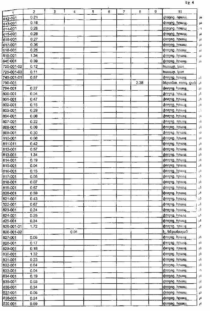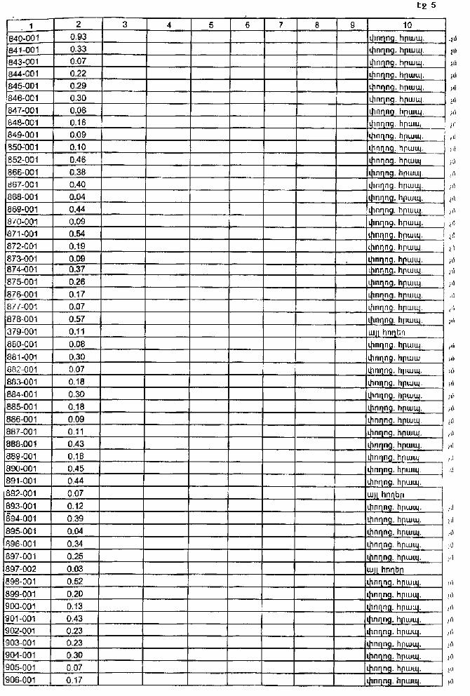 4. Ընդունել ի գիտություն Հայաստանի Հանրապետության Արմավիրի մարզի Մրգաշատի գյուղական համայնքի հողային ֆոնդի առկայության և բաշխման մասին հաշվետվությունը՝ 2005 թվականի հունվարի 1-ի դրությամբ՝ համաձայն NN 8 և 9 հավելվածների: