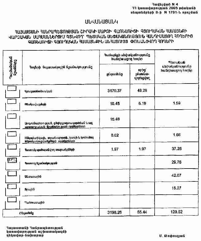 4. Ընդունել ի գիտություն Հայաստանի Հանրապետության Շիրակի մարզի Գառնառիճի գյուղական համայնքի հողային ֆոնդի առկայության և բաշխման մասին հաշվետվությունը` 2005 թվականի հունվարի 1-ի դրությամբ` համաձայն N 8 հավելվածի: