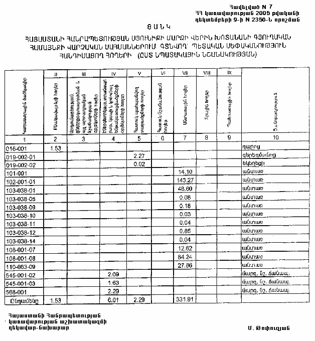 9 դեկտեմբերի 2005 թվականի N 2356-Ն