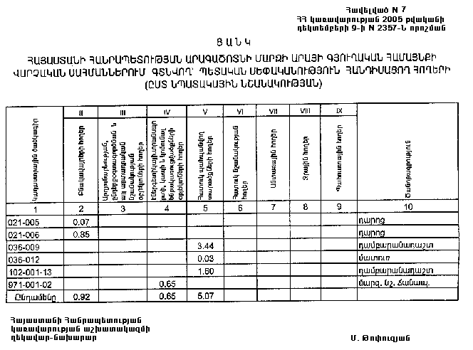 բ) Հայաստանի Հանրապետության Արագածոտնի մարզի Արայի գյուղական համայնքի վարչական սահմաններում գտնվող հողերից 6.64 հեկտարը համարվում է պետական սեփականություն՝ համաձայն N 7 հավելվածի: