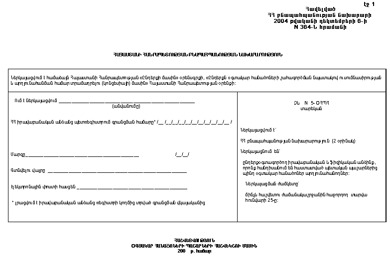 ՕԳՏԱԿԱՐ ՀԱՆԱԾՈՆԵՐԻ ՊԱՇԱՐՆԵՐԻ ՀԱՇՎԵԿՇՌԻ N 5-ՕՀՊՀ ՁԵՎԸ ՀԱՍՏԱՏԵԼՈՒ ՄԱՍԻՆ