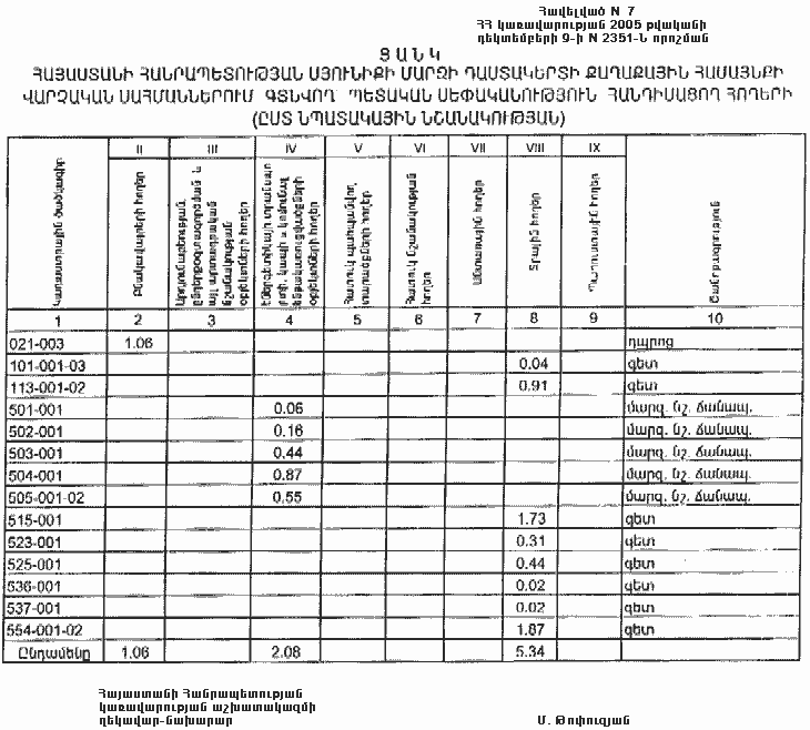 9 դեկտեմբերի 2005 թվականի N 2351-Ն