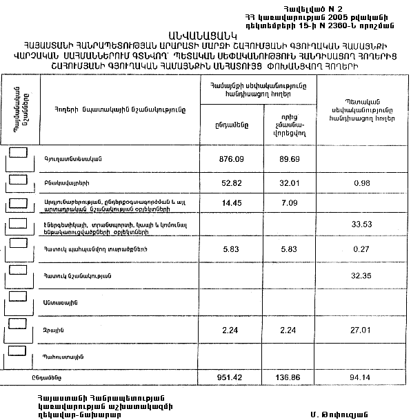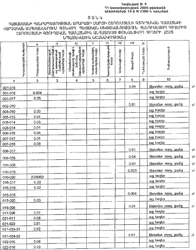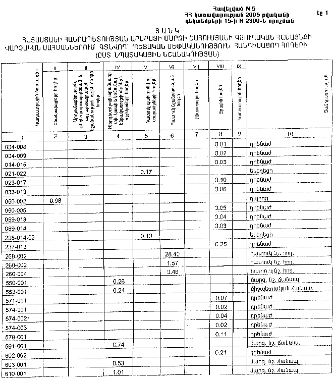 15 դեկտեմբերի 2005 թվականի N 2360-Ն